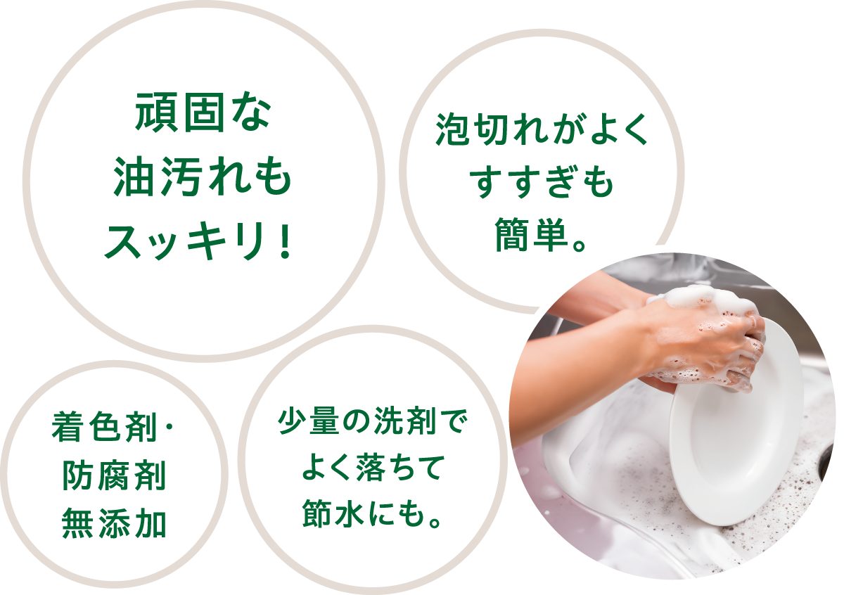 食器洗いが癒しの時間に。天然精油配合の香り。
